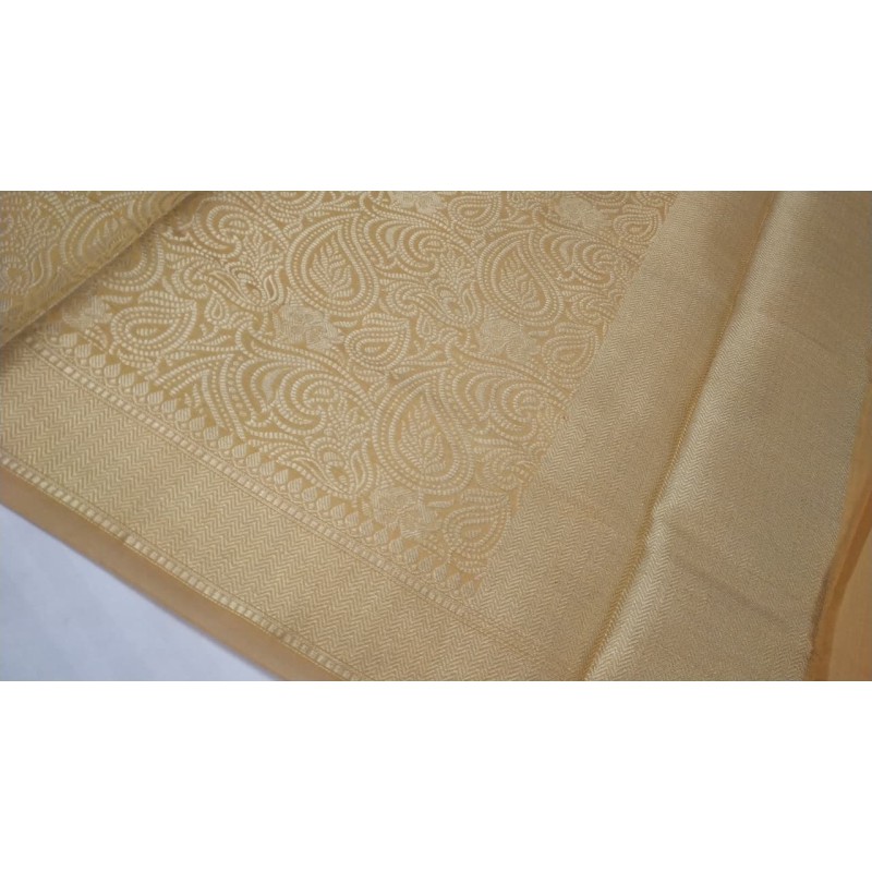 Enhance your ethnic collection with our Premium Banarasi Mix Silk Jaal all over Dupatta all over Dupatta Fabric, a luxurious creation from the Banarasi weaving tradition. This elegant fabric is crafted from soft Katan silk, adorned with intricate zari buta (motifs) all over, and finished with a smooth Zari (border) that adds a royal touch. Perfect for sarees, suits, lehengas, and festive wear, this fabric reflects the timeless artistry of Banaras.