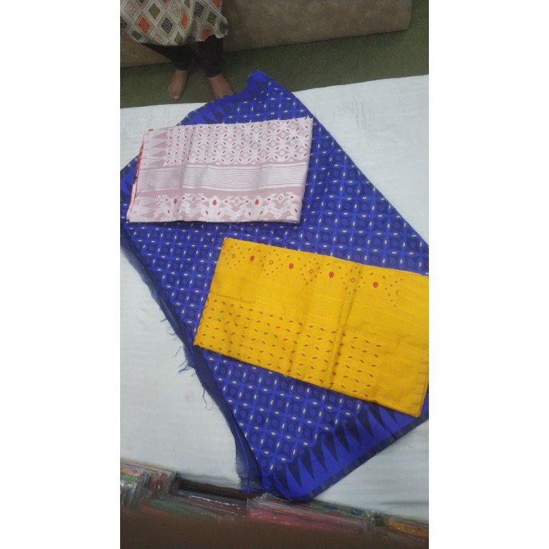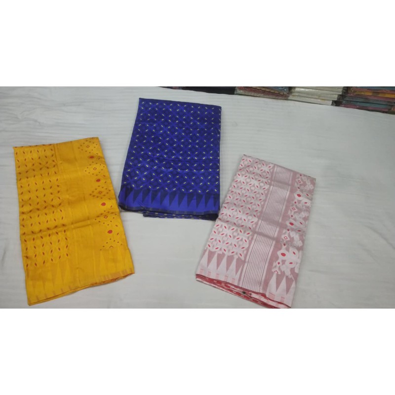 Weaving Type: Handloom / Powerloom with White Zari Border & Buti Work