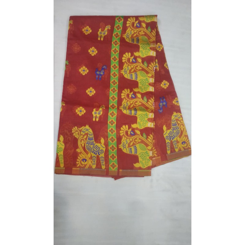 Weaving Type: Handloom / Powerloom with White Zari Border & Buti Work