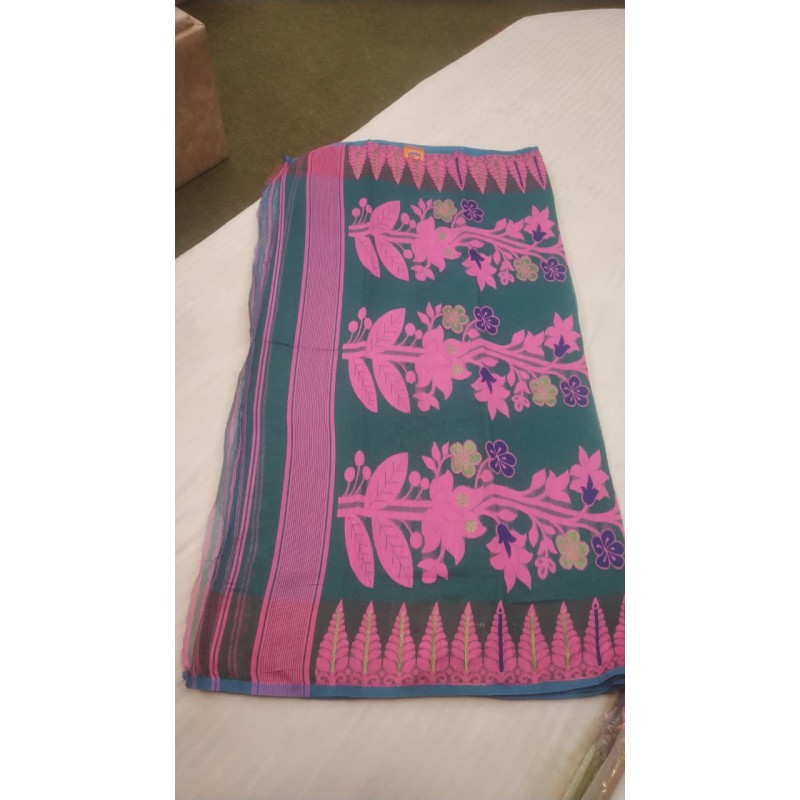 Characterized by a thick decorative border and beautifully designed pallu featuring floral and paisley motifs.