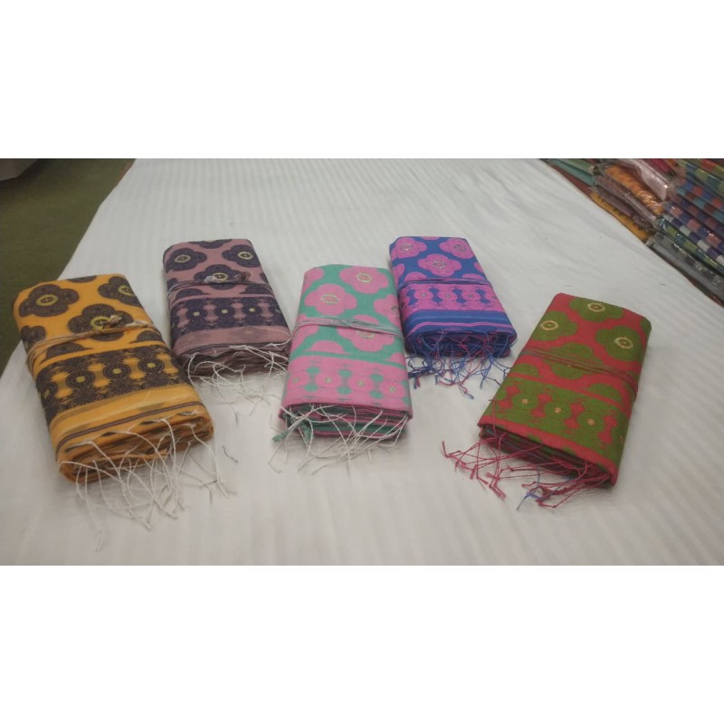 Known for its sturdy texture with beautiful artistic borders and a decorative pallu that reflects Bengali heritage.