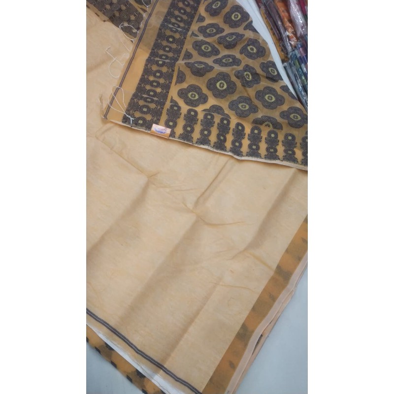 Wrap yourself in the timeless beauty of a Handloom Tant Jaal cotton saree