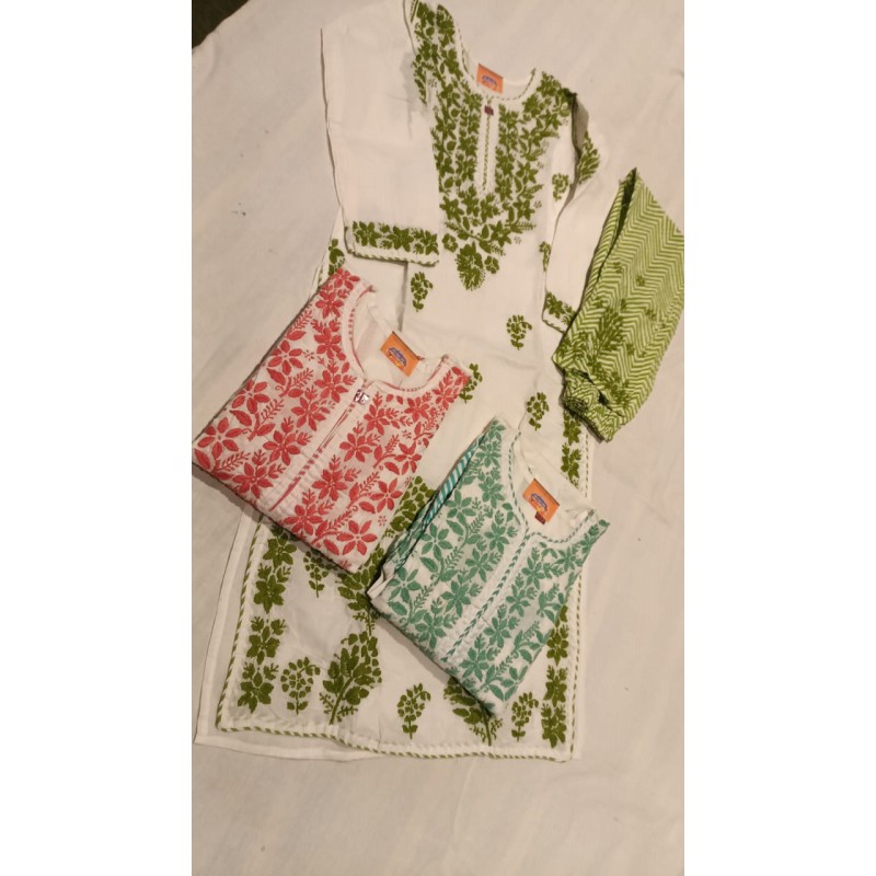 Introducing our exclusive Handmade Chikankari Kurti Set, where tradition meets modern style. Each piece is meticulously embroidered by skilled artisans, showcasing intricate patterns that tell a story of heritage and craftsmanship.