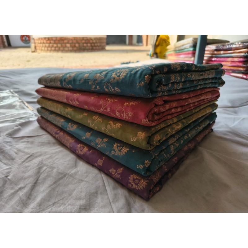 Luxurious Katan Silk Fabric with fine zari buta weaving