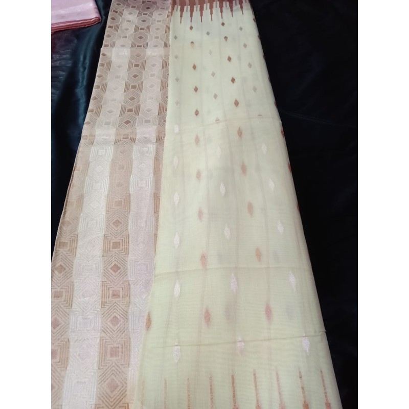 Available in plain, buti, and woven zari pattern varieties