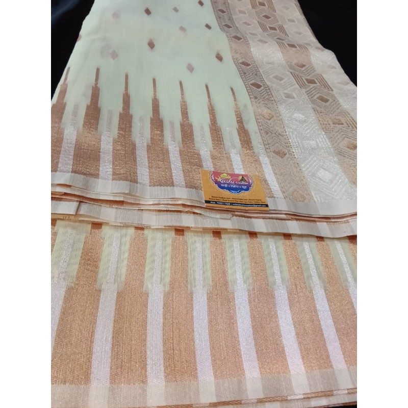 Lilen Cotton with White Zari Minadar Saree