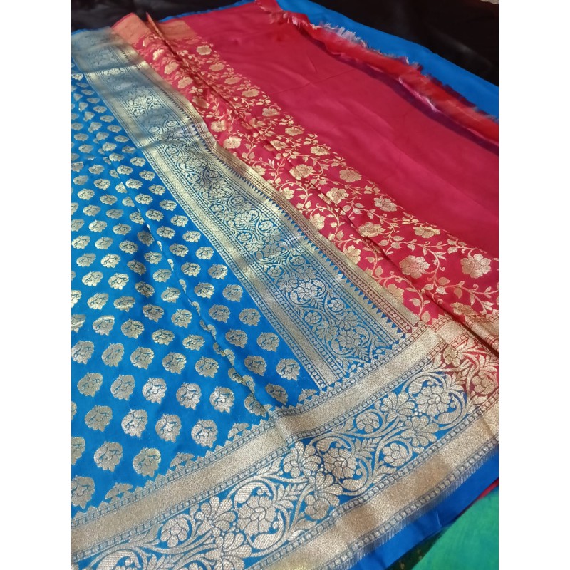 Add timeless grace to your ethnic wardrobe with our Katan Buta with Satin Patta Fabric — where Banarasi tradition meets royal beauty.