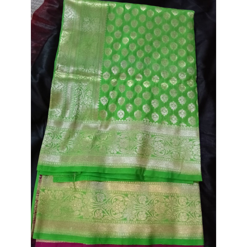 Design: All-over Zari Buta Work with Satin Border Finish