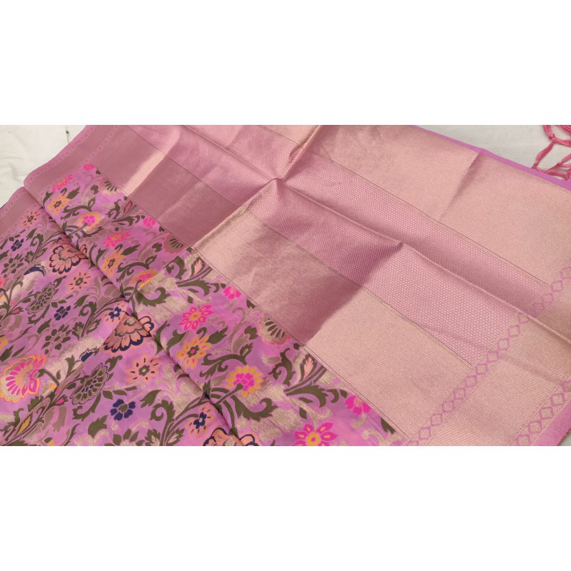 Banarasi Silk Jaal Malti colour boota all over Dupatta – Banarasi Elegance with Royal Border