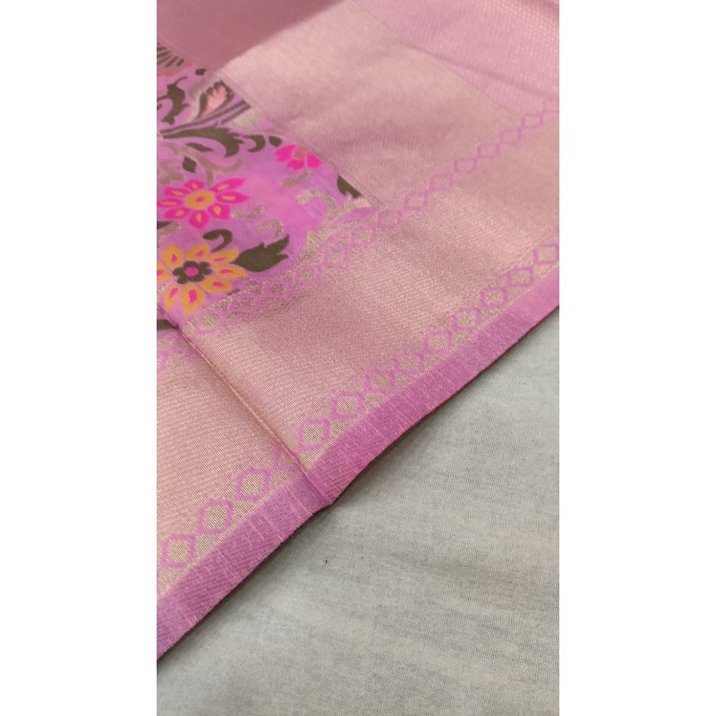 Texture: Smooth, soft, and lustrous with woven zari motifs