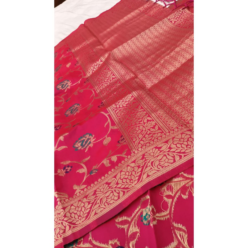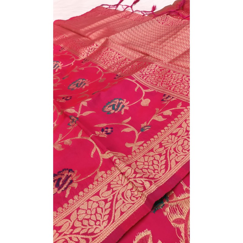 Add timeless grace to your ethnic wardrobe with our Katan Buta with Satin Patta Fabric — where Banarasi tradition meets royal beauty