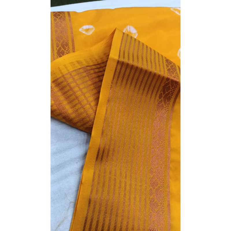 - Authenticity: Genuine Bandhani is made by hand-tying small knots on the fabric before dyeing it in multiple stages. Signs of authentic craftsmanship include a slightly crinkled texture, visible tiny tie marks (dots) in the center of the motifs, and subtle, organic asymmetry in the patterns. If the dots are perfectly uniform, it may be a machine-printed imitation.