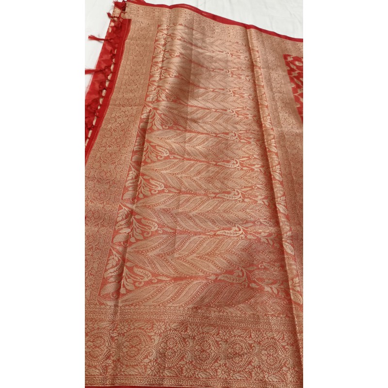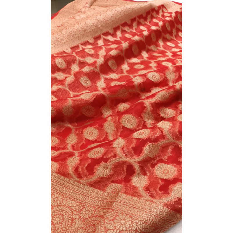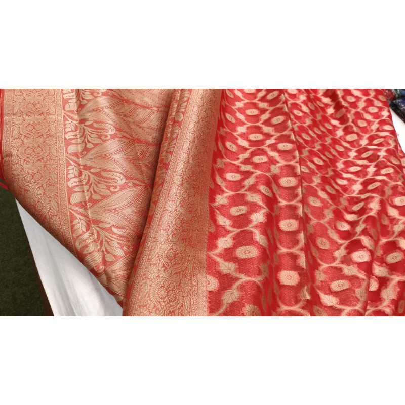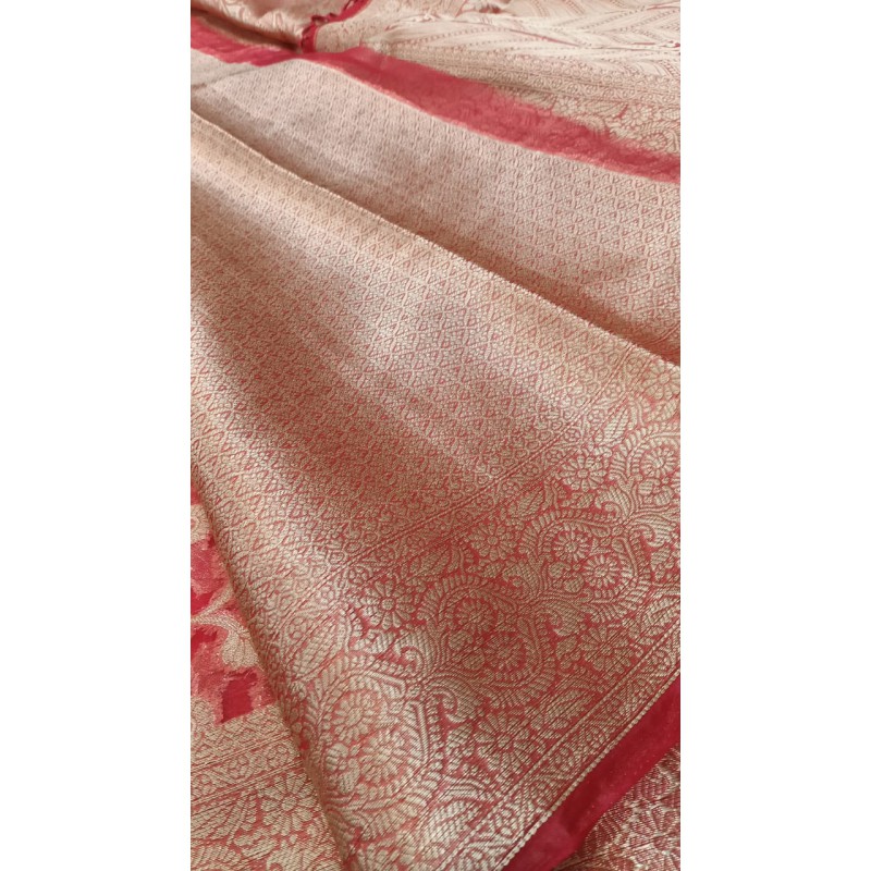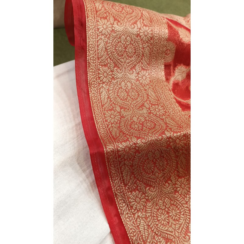 - Durability: Despite its delicate appearance, the material is known for its surprising strength and durability when used in garments like sarees. The threads are tightly twisted and treated to become stiff, which contributes to its structure and resilience.