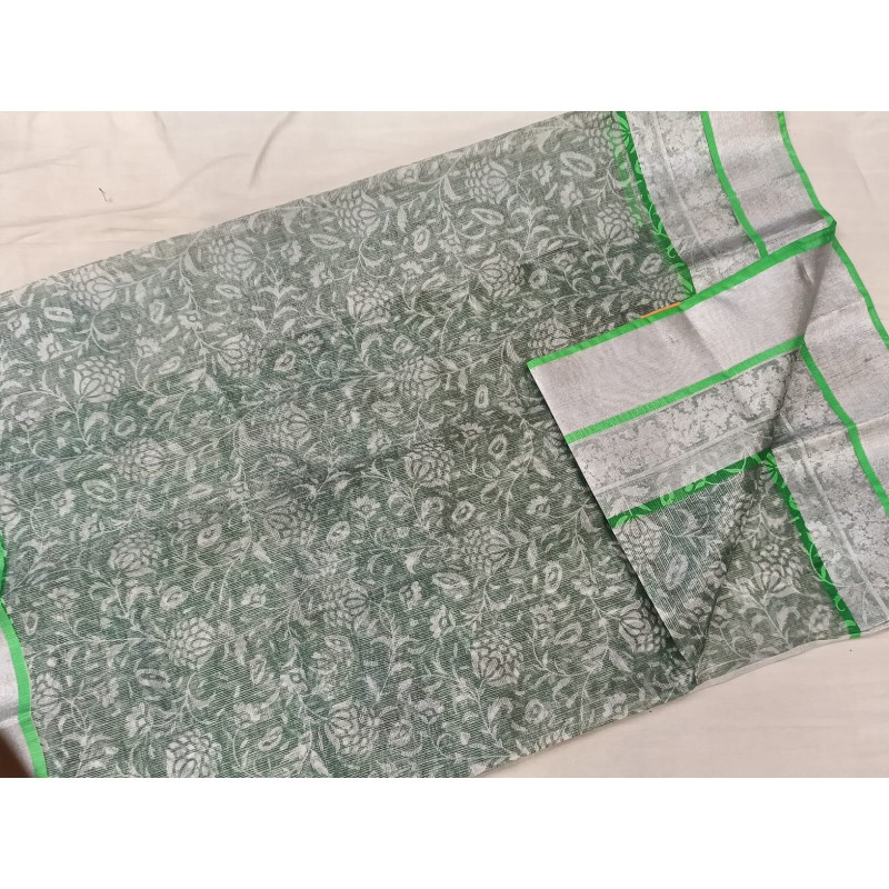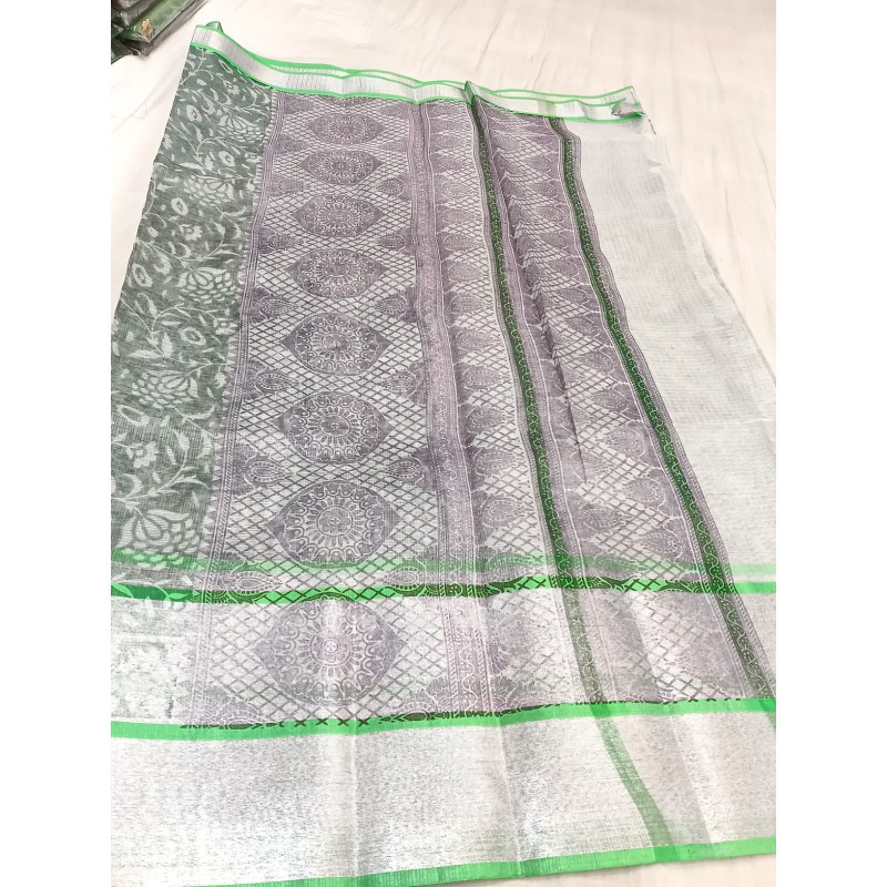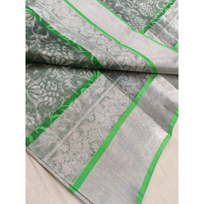 - Lustrous Appearance: The key feature is the subtle, natural sheen achieved by interweaving fine cotton threads with metallic or zari threads. This gives the saree a rich look without being overly flashy.