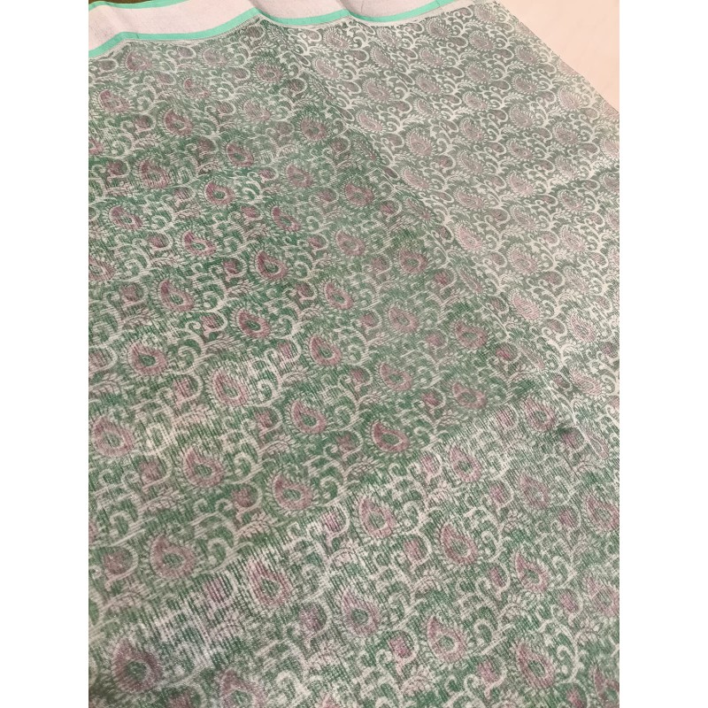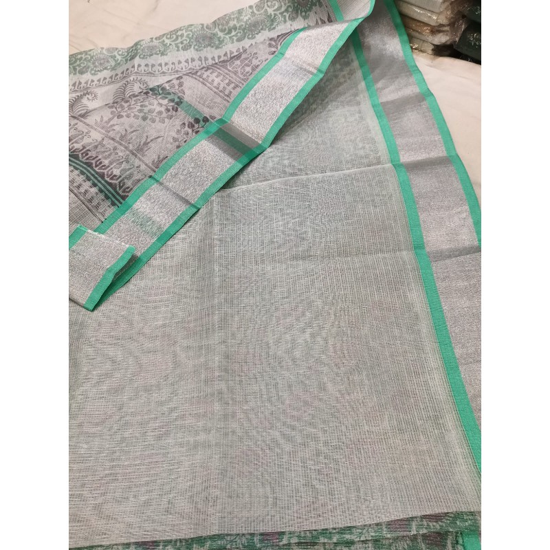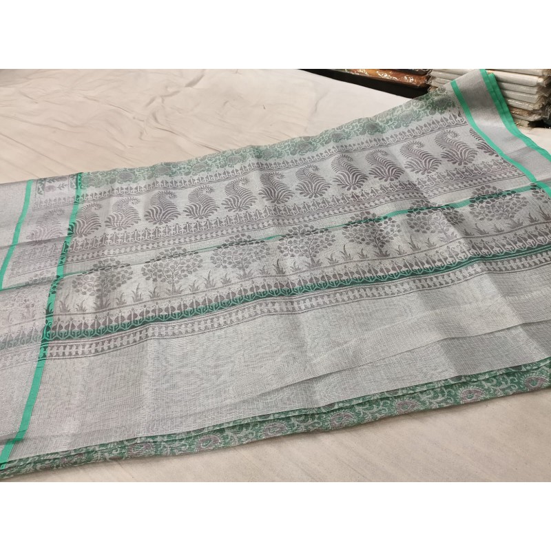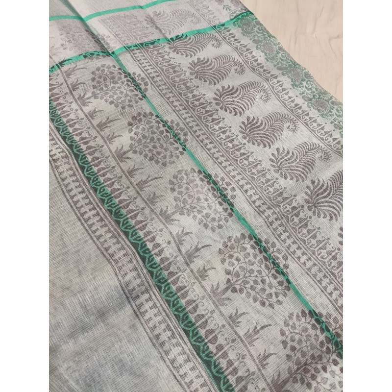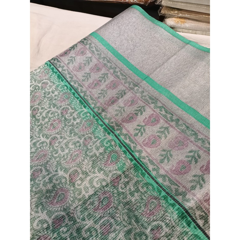 - Lustrous Appearance: The key feature is the subtle, natural sheen achieved by interweaving fine cotton threads with metallic or zari threads. This gives the saree a rich look without being overly flashy.