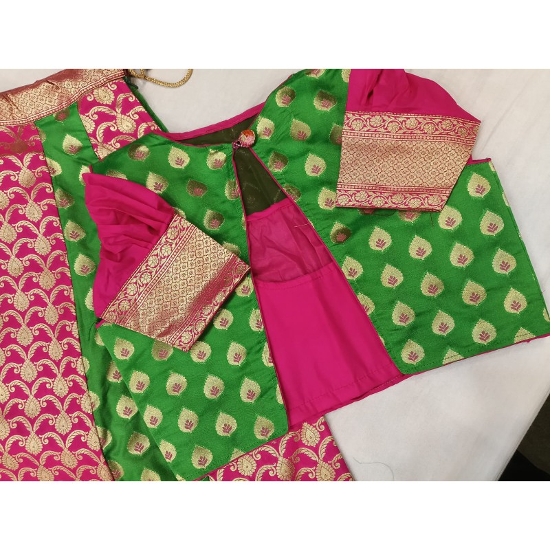 The garment featured in the image is a lehenga choli, a traditional Indian outfit. The specific qual..