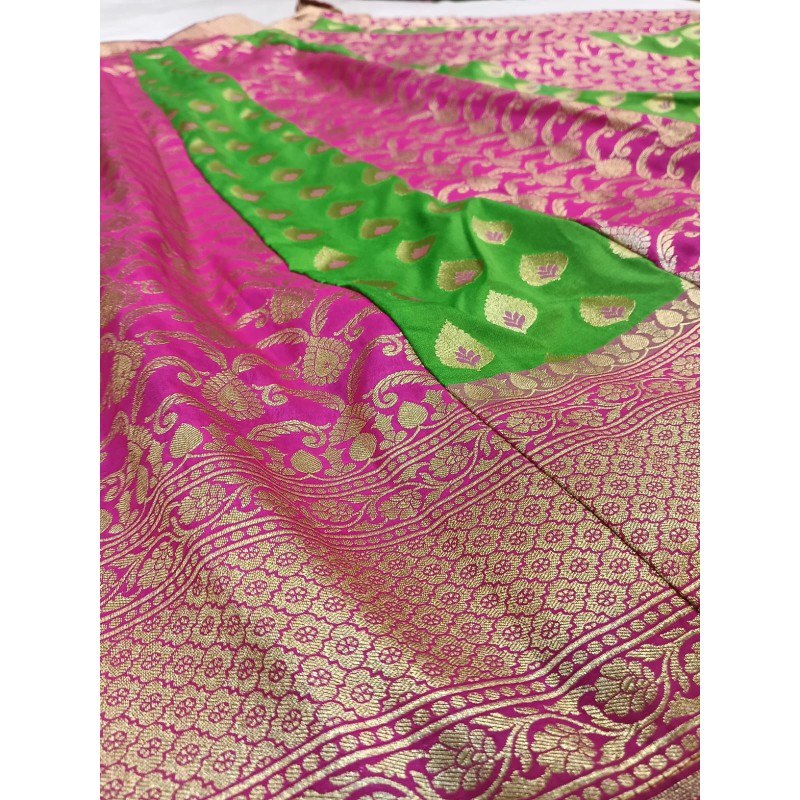 Katan silk lehengas are considered a premium choice for bridal and festive wear due to their superior durability and luxurious finish. High-quality pieces often feature Satin borders or accents, which provide a smooth, lustrous contrast to the structured, hand-twisted silk of the main body.