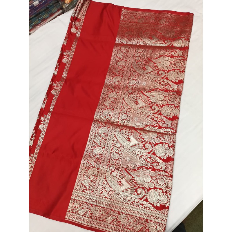 Katan Saree With Silk Buta Jaal – Banarasi Elegance with Royal Border