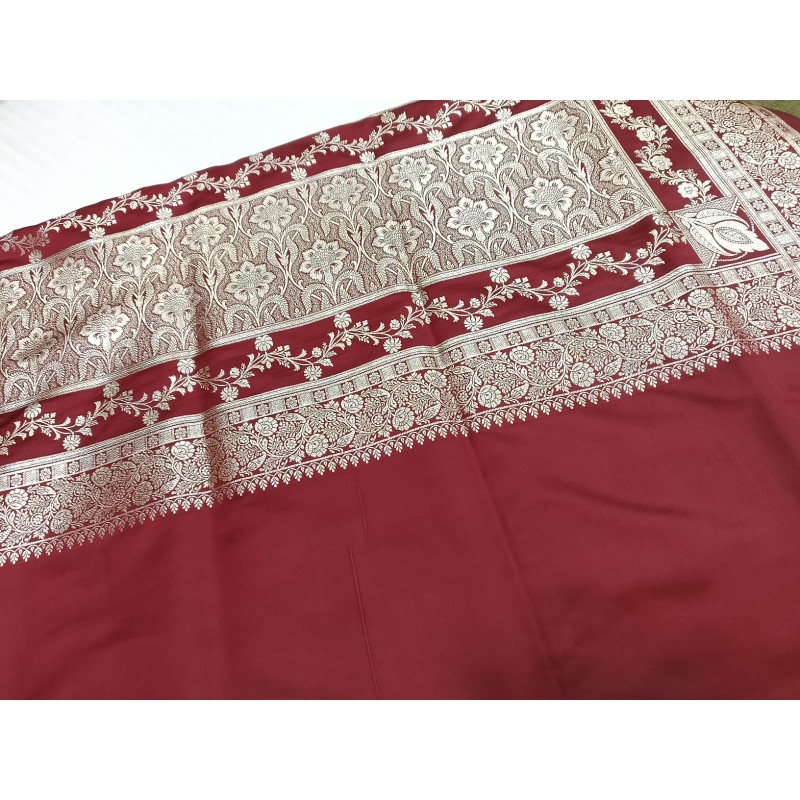 Silk flower Jaal saree– Banarasi Elegance with Royal Border Product Description: Enhance your et..