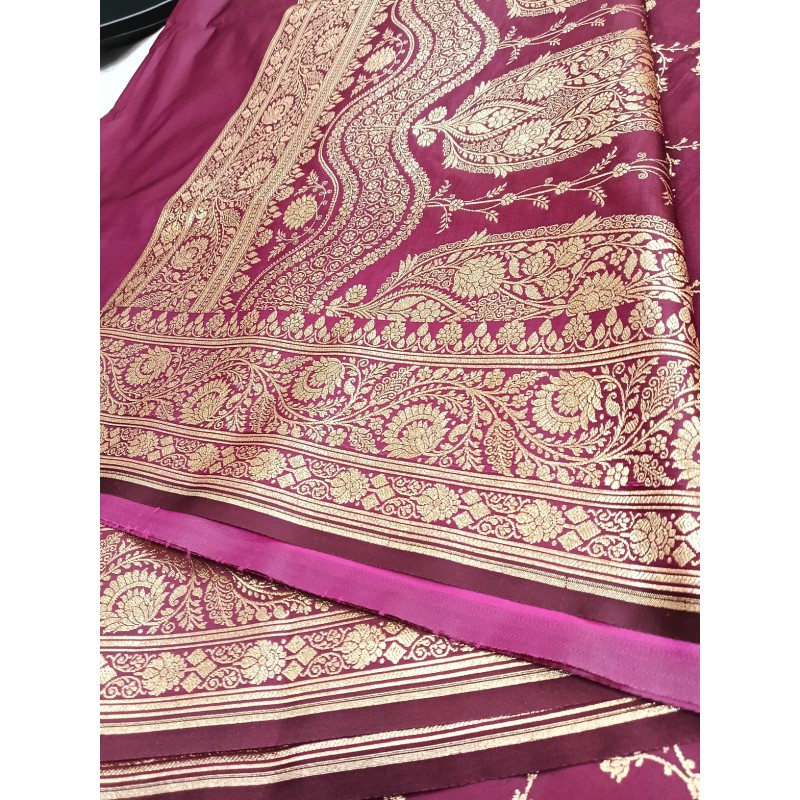 Enhance your ethnic collection with our Premium Katan Buta with Satin Patta Fabric, a luxurious creation from the Banarasi weaving tradition. This elegant fabric is crafted from soft Katan silk, adorned with intricate zari buta (motifs) all over, and finished with a smooth satin patta (border) that adds a royal touch. Perfect for sarees, suits, lehengas, and festive wear, this fabric reflects the timeless artistry of Banaras.