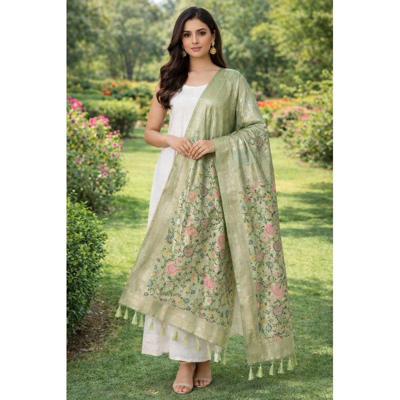 Banarasi Silk Jaal Malti colour boota all over Dupatta – Banarasi Elegance with Royal Border