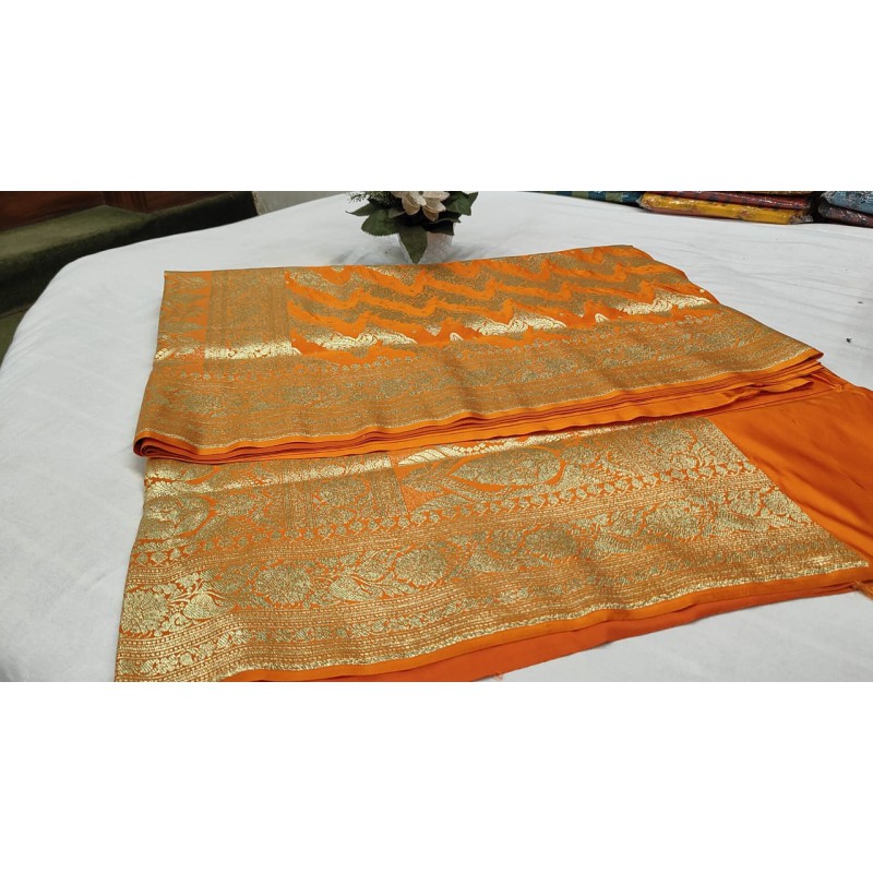 Kattan silk is one of the most prestigious varieties of Banarasi silk, admired for its fine weave, glossy surface, and luxurious feel. Combined with traditional zari work, it becomes an heirloom piece cherished across generations.