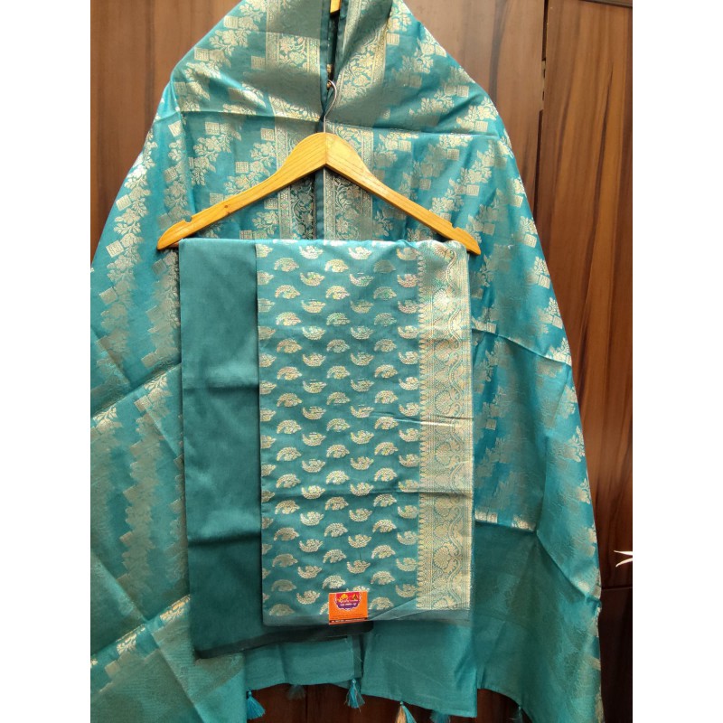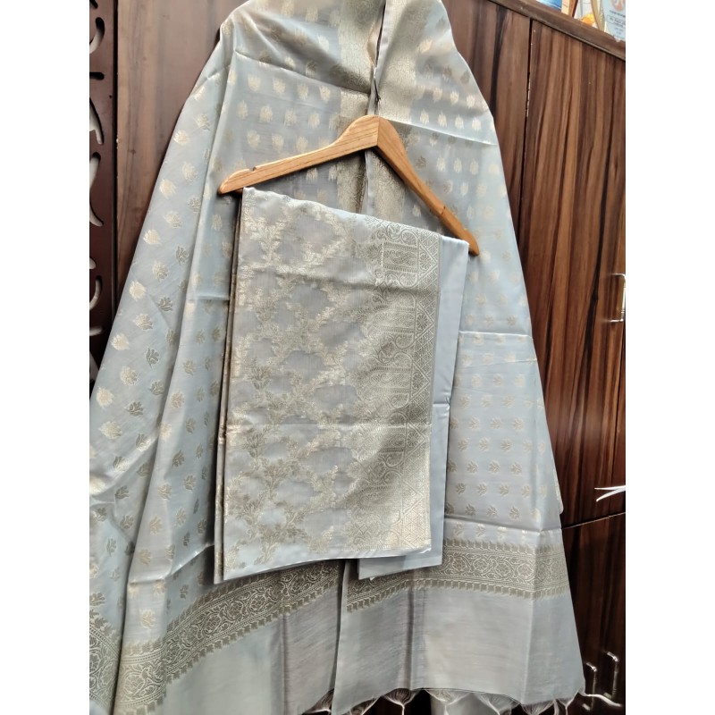 Elevate your ethnic wardrobe with our Dupion Silk with Antique Zari Suit, a perfect blend of tradition and timeless elegance. Crafted from premium Dupion silk fabric, this suit features exquisite antique zari embroidery that adds a regal charm to your festive and wedding look. The rich texture of dupion silk and the intricate zari detailing make it a perfect choice for special occasions, parties, and celebrations.