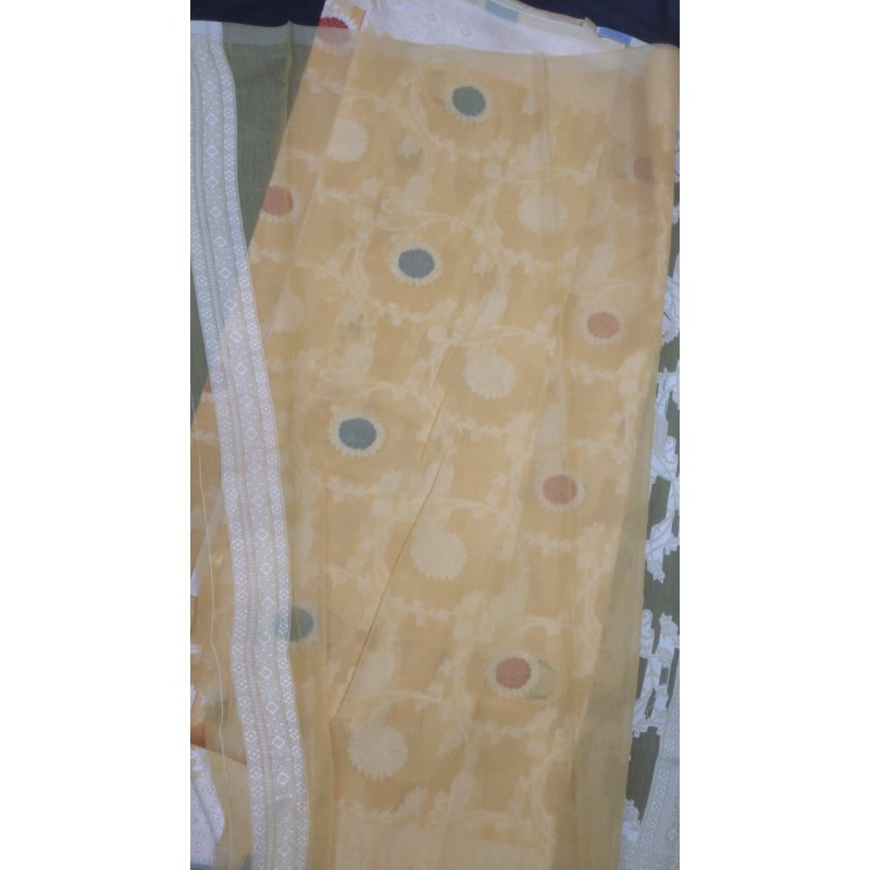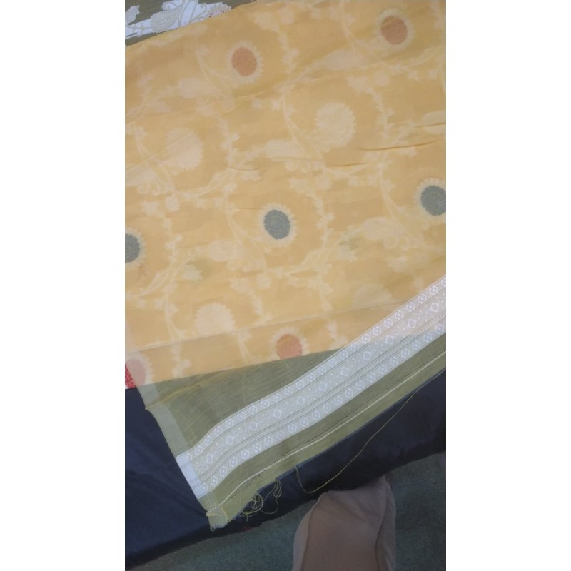 Weaving Type: Handloom / Powerloom with White Zari Border & Buti Work