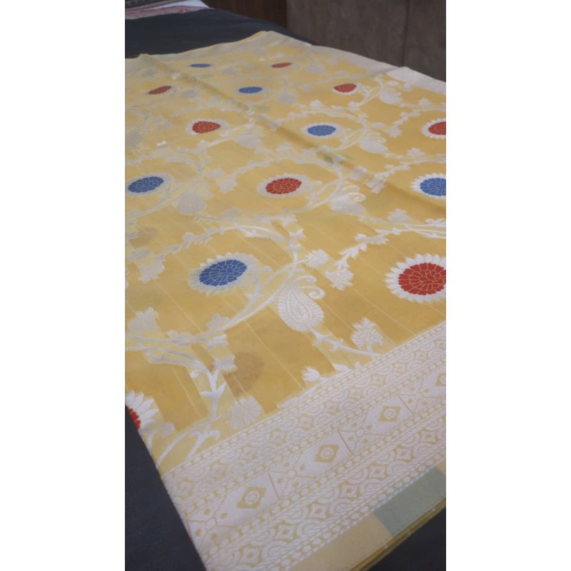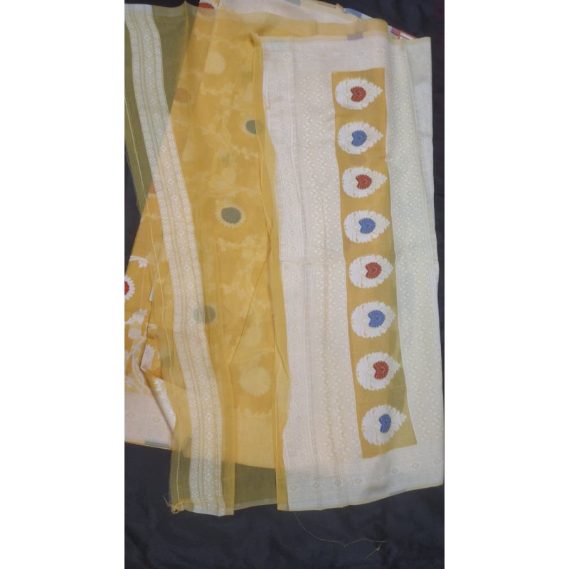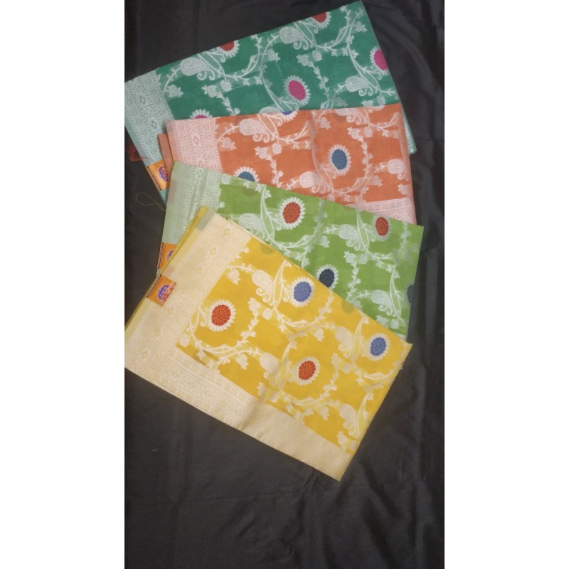 Available in plain, buti, and woven zari pattern varieties